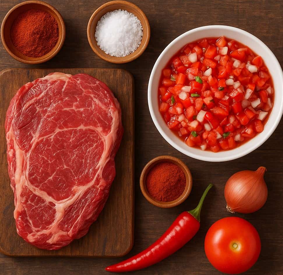 - Serve: Sprinkle the salsa over the grilled meat pieces. Optionally, serve with extra chili powder and salt on the side for dipping.